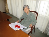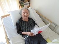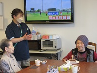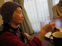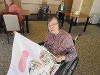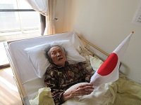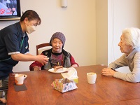 N様お誕生日おめでとうございます。いつも職員や入居者の方に「いつもありがとうね」など笑顔で仰ってくださいます。皆さんとテーブルを囲んでお祝いです。
