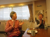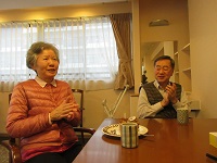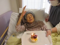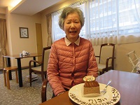 ご夫婦で入居の奥様が今日お誕生日を迎えられました。笑顔の素敵な方で「チョコレートケーキ嬉しいわ!」とハッピーバースデーの歌を一緒に歌われていました。
