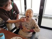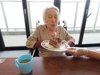 美味しそうにチョコレートケーキを召し上がっていただきました。ご家族様もお祝いにみえて一緒に過ごされていました。また来年もよろしくお願いいたします。