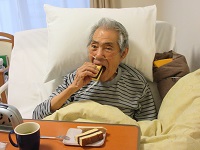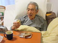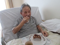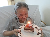 お誕生日のケーキで好みをお聞きすると「シベリアがいい!」と仰っていました。若い職員は「シベリア⁇」となっていましたが、あちこち探してやっと見つけることができました。「ありがとう。おいしいよ」と仰って最高の笑顔を見せていただきました。