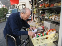 隔週の火曜日に来てくれています。皆さん「今日はとくし丸の日?」など火曜日になると聞かれるほどです。今日は初めての参加をされた方もいて「少しだけね」など仰りながらほどほどに買われて楽しまれていました。
