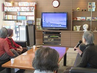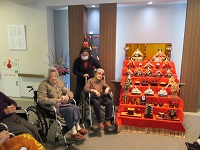 女性に集まっていただき、ひなあられを召し上がりながら思い出を語っていただきました。「昔、出してあったよ。お雛様。姉妹で見てたよ」など仰っていました。一緒に歌を歌って楽しい時間を過ごしました。