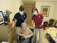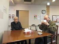 まずは5階のK様。最近お食事が進まず職員一同心配していますが、大好きな缶詰は召し上がったとのことで少し安心しました。4階のY様、ちょうど居室から出てこられ飲み物を飲みたいとのこと。男の方に声をかけると顔を上げてくださりパチリ!
