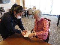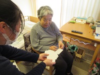 入居者の方と買い物に行き、大根ときゅうりを浅漬けにしたものを食べていただいています。入居者の方々でもみ込んでくださったのでとても美味しかったとのこと。来週またお楽しみに!