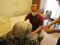 本日は、節分で、シーハーツ川口でのスタッフが鬼に扮して豆まきを行いました。