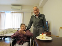 本日は、ご夫婦でご入居されているK様のお誕生日です。ご夫婦で仲良く写真撮らせていただきました。K様お誕生日おめでとうございます。🍰🎉🕯