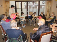 歌を歌いながらボールを使っていただきました。皆さん笑顔で楽しまれていました。