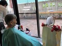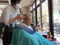 今日は男の方が中心で理美容を行っていて、皆さん笑顔みられています。ご夫婦でさっぱりされた方もいらっしゃいました。