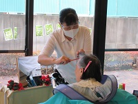 「いつもかわいいですが、またきれいになっていますね」との声かけに「うれしいこと言ってくれる~」と仰っていました。理美容は皆さん毎月楽しみにされています。