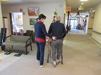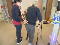 N様が、1階の廊下で歩行訓練行っておりました。ちょうどクリスマスツリーと一緒にリハビリ風景を写真に撮らせて頂きました。