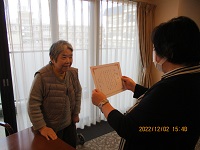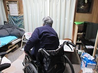 自宅に冬物とワクチン接種の用紙を取りに行かれています。まずは自分でどのくらい歩けるかなあとつかまりながら歩かれて冬物など取りに行かれていました。「結構歩けるなあ。リハビリ頑張ったからなあ」と仰っています。今後の目標は「杖歩行して向かいのお店に食べに行くこと!」職員一同S様の目標に向かってまた動き出しますよ!