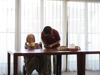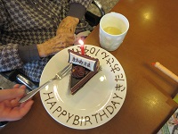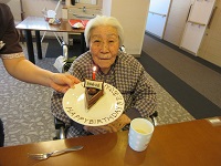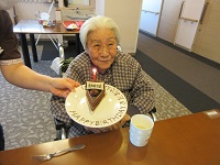 ケーキをお出しすると「いいよ、いいよ」と遠慮されていました。その後「お風呂が気持ちよかった。お風呂の上には特別室があるんだよ」など話されていた後に、ご自分で召し上がっています。また来年もよろしくお願いします。