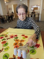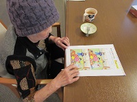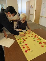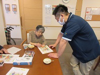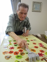 目が見えなくてと仰る方も中にはいらっしゃったのですが、職員が話しかけながらやらせていただくと「そこが違うわ」と仰ってくださっています。