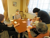 機能訓練士のレクレーションが始まりました!皆さん真剣に作ってくださっています。