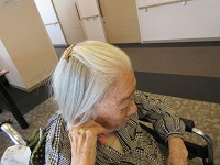 素敵な白髪のK様に髪留めをつけましょうかとの声掛けにお願いしますとの事でしたので、髪留めをつけさせていただきました。笑顔がとにかく素敵でしたので、写真でご紹介させて頂きます。☻