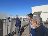 私は視力が弱い為、屋上から富士山は見れないとずっと思っておりましたが、あるスタッフから天候により富士山が見えるよと事から、ご入居者様と一緒に富士山見物にスタッフがお誘いしてくれました。写真の赤い円で囲んだ所が富士山が見えたとの事でした。これから、冬に向けて空気が澄んでくると思いますので、私も肉眼で富士山を探してみます。