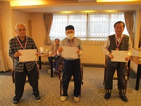 秋に味覚、美味しい栗を片手で掴んで選手権の表彰式を行いました。男の方が強く、やはり手の大きさなのでしょうか。また来月も行いますのでお楽しみに!
