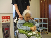職員がお風呂上がりに肩をもみ始めたら気持ちよさそうにされています。