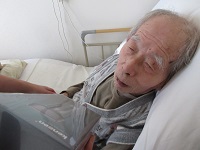 K様のご家族様より、新しい髭剃りが届きました。お昼寝をされているところでしたが、お声がけに起きて頂き、新しい髭剃りを確認して頂きました。
