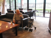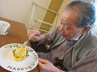 週に1度のカラオケを楽しまれています。今日は新顔のY様も加わってくださり盛り上がっています。面会の方がみえても「さぶちゃんが歌っているから」と仰り、なかなか席を動かず楽しまれていました。