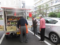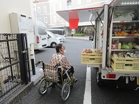 今日はとくし丸での買い物を3階の方と5階の方に声をかけています。毎週楽しみにされています。