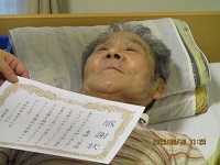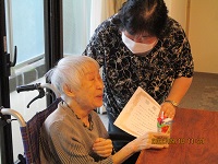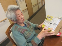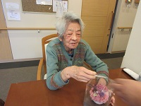 I様のご家族より、お花のプレゼントが届きました。真剣に箱の中からお花を取り出され、嬉しそうにご覧になられているところを写真に撮らせて頂きました。I様、お花のプレゼント良かったですね💐