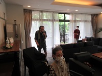 今週のお花は、中心に紫のカトレアのあるちょっと豪華なアレンジです。お風呂帰りに玄関まで、ご入居者様が見に来てくれます。少しづつ秋の気配で、お花もきれいなまま頑張って1週間楽しませて頂いております。