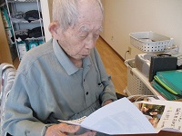 お誕生日おめでとうございます。ご家族様よりお手紙が届いてじっくり読まれています。ケーキよりお手紙だったようでしばらく読まれていました。