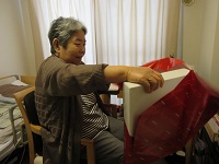 姪っ子様よりプレゼントが届いています。お部屋にお持ちすると「あら、なにかなあ」と仰りながら開けています。「素敵!お礼を伝えたい。全部気に入ったわ!自分で伝えたい。」と仰っています。