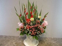 先週のユリの花が暑さのせいで早めに終わって寂しくなってしまい、急遽お願いしました。玄関が明るくなりました!