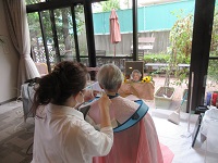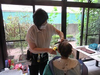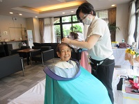 本日、8月の理美容の日です。本日、理美容を利用される方で唯一カラーリングをされたO様をご紹介させて頂きます。いつも素敵な笑顔の写真を撮らせて下さりますが、よりきれいな笑顔の写真となりました。