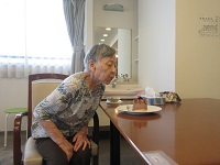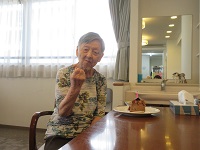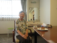 「ハッピーバースデー」の歌を歌うと「皆さんありがとうございます」と仰りながら笑顔見えています。「おめでとうございます」の声掛けに「ありがとうございます。よろしくお願いします」と喜ばれています。