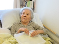 ご入居者様に宅急便でプレゼントを頂く事がありますが、特にお誕生日に向けてのプレゼントが届く事が多いです。本日も今月お誕生日を迎えるY様にご親族様からお菓子のプレゼントがありましたので、写真を撮らせて頂きました。