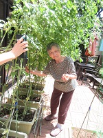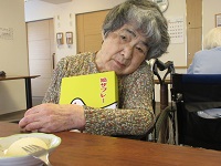 「トマトが赤いから取ってもいい?」と仰っています。お願いすると、両手いっぱいに取られています。「みんなで食べるから」と他の入居者の方と洗ってくださり召し上がっています。