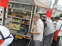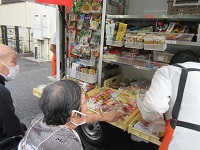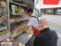 3階、5階のご入居者様のとくし丸の日です。やや小雨の中、お好きなお菓子やパンや果物を購入されてました。階ごとに開催しておりますので、2週間ぶりの買い物ですから、沢山購入される方が多いです。ご自身で選んで購入する事は、楽しそうですが、マスク着用を忘れそうになりますので、玄関でしっかり着用して頂いております。