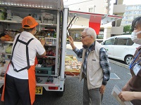 本日は、とくし丸の移動販売の日です。最近の暑さの為、本日は、買い物に参加される方が少ないようでした。参加されたご入居者様も暑いね~と話されながら足早に買い物されておりました。