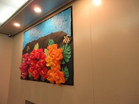 エレベーターの飾りも梅雨明けとなりましたので、花火とハイビスカスの飾りに変更しました。本日も酷暑で、ハイビスカスと花火を見て元気をもらいました。