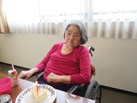本日は、K様のお誕生日です。K様のリクエストにてチーズケーキのプレゼントとなりました。ケーキのロウソクも一度で吹き消していただき、昼食前にお祝いをさせていただきましたので、一口召し上がっていただき残りは、おやつに召し上がられるそうです。K様、お誕生日おめでとうございます🍰🕯🎉