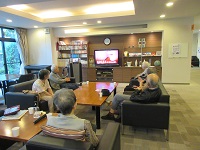 カラオケサークルの開催日で、ご入居者様も思い思いの歌唱をされておりました。事務所でも、ラウンジからご入居者様の歌声に思わず一緒に口ずさんでおります。