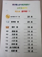 「雨が降ったら虹が出る!お手玉投げて的入れ選手権!!」をやらせていただきました。その結果、ダントツで優勝の方、女の方でふんわりした投げ方がとても上手でした。続いて2位3位と車椅子の方で頑張っていただきました。