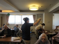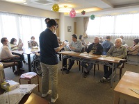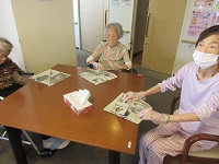リハスタッフによる集団レクです。まもなく、5月5日のこどもの日ですので、かぶとの折り紙を行いました。昔遊びですが、ご入居者様、真剣に取り組まれてました。真剣なお顔とかぶとが出来上がったお顔をご紹介させて頂きます。