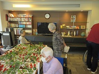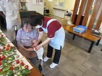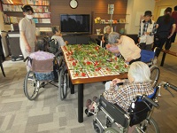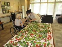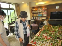 施設長自らテストに入ってくれています。「車椅子に座っている方は、このくらいの高さになるかな?」