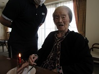 今日は笑顔で起きてくださり、ラウンジで皆さんからの「おめでとう」を受けてくださいました。