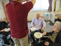 本日、シーハーツ川口選手権・桜ひらひら 花びらキャッチ 桜満開選手権を開催してます。スタッフが脚立に乗り上から花びらを舞い落して、それをかごでキャッチします。皆様真剣に花びらキャッチされました。