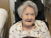 職員から「すごくきれいです。かわいい」など声がかかると「ありがとう。そう?」など笑顔で過ごされています。