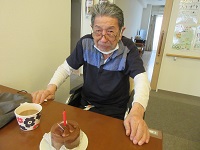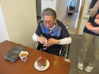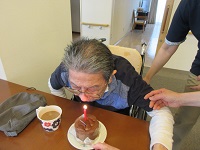 今日は、H様のお誕生日です。ご家族も、お祝いの面会に来られてました。ご希望は、チョコレートケーキ🎂でした。スタッフが、ハッピーバースデーの曲と共にH様の元に伺ったら、思わず、ありがとうとうれし涙で感激してくださいました。真剣な表情でろうそく🕯の火🔥を消されてました。H様、お誕生日おめでとうございます🎂🕯🎉