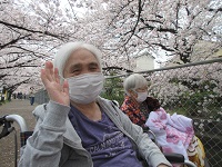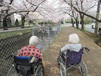 ご入居者様と訪れているお花見の場所は、川口市民の憩いの場所であり、近隣の小学校のバス遠足でも訪れるグリーンセンターの脇の見沼用水の両岸にある桜並木です。こちらの公園は、シーハーツ川口のご入居者も、散歩に訪れる事もあります。但し、私は、散策よりも公園内のソフトクリームが好きです。ご入居者様もその気持ちに同意して下さり、一緒に食べる事もありました。園内には、温室や花壇や噴水が整備されており、予断になりますが、ドラマの撮影にも使用された事があります。