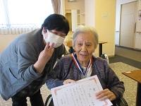 入居者の皆様と仲良しのN様。皆さんに歌っていただき喜んでいました。