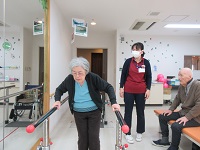 いつも、奥様の車いすを自然と介助しながら、ご主人もリハビリしております。お2人で仲良く、お互い励ましながらリハビリされているご様子をご紹介させて頂きます。