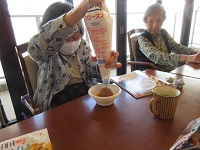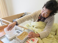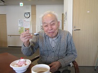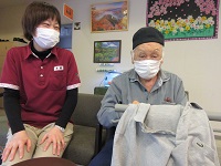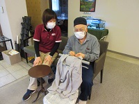 I様は、とても手先の器用な方です。本日は、ポロシャツの綻びを直したいとの事で、裁縫道具貸してほしいとの事でした。スタッフに見守られながら、裁縫をして下さるとの事で、その姿写真に撮らせて頂きました。真剣な表情で取り組まれておりましたが、カメラを向けるとカメラ目線で対応下くださいました。素敵な写真撮影が出来ました。I様、ありがとうございます。